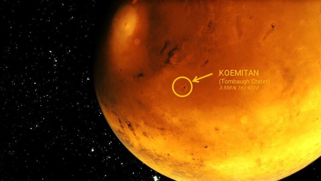 Paying tribute to South and North Amerindian natives, the twin cities of Koemitan-Nahootsoii (from Tupi coemitã, red dawn; and from Navajo nahootsoii, twilight) are aligned with the first topic of the Transhumanist Declaration, which proposes to broaden the evolution of human potential by overcoming our confinement to planet Earth [1] in order to reduce the risk of the summum malum, i.e., the supreme evil. Centuries ago, Thomas Hobbes defined the summum malum as being the individual violent death, which is comprehensible since in his day and time the idea of human extinction was inconceivable. Currently, philosophers equate the supreme evil with the extinction of our species [2]. Not only can humankind become extinct due to our misuse of technology, but, also, we find ourselves in clear danger from planetary or extraplanetary disasters. In the light of knowledge afforded by science throughout the last hundred years, taking into full account the history of mass extinction events and planetary-wide catastrophes, supporting a project of human cosmic expanse surpasses mere vanity. It is not a question of if, but when we will have to build cities in extraterrestrial contexts. Not doing so is not an option if we intend to survive – and, incidentally, to carry with us all memory of life on Earth.